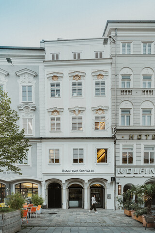 Unsere Niederlassung in Linz haben wir 1999 eröffnet. Die Adresse am Hauptplatz ist erstklassig. Das Haus an sich hätten früher wohl die wenigsten mit diesem Attribut versehen. Wir sahen das anders. Mit einer Breite von nur 6,6 Metern und einer Tiefe von 52 Metern waren Restaurierung und Adaptierung zweifellos eine Herausforderung, die nach besonderen architektonischen Lösungen verlangte. Entstanden ist ein Bankhaus mit einmaligem Ambiente, in dem Altes und Neues eine symbiotische Beziehung zueinander eingehen.